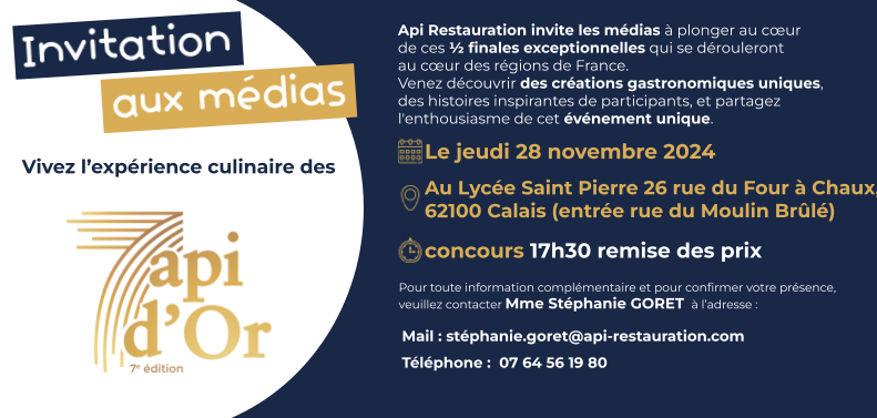 Api Restauration, acteur majeur de la restauration collective, annonce avec enthousiasme le coup d’envoi de la 7e édition des Api d’Or, un concours national (et un peu plus) qui célèbre les talents culinaires de ses salariés. Fort du succès des éditions précédentes, Api Restauration se prépare à vivre une nouvelle aventure gustative où la créativité et la passion culinaire seront à l’honneur.